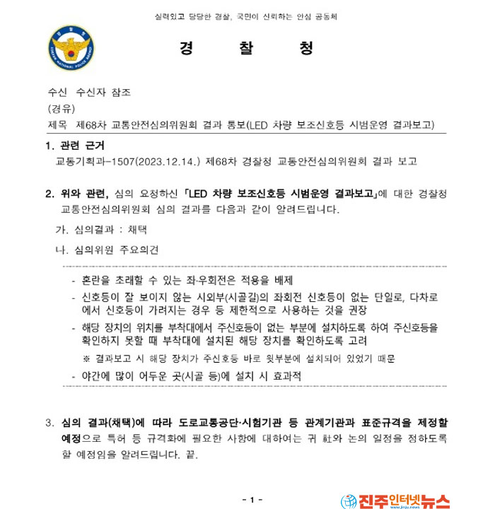 'µðÁöÅÐ LED ½ÅÈ£µî', Á¦68Â÷ °æÂûû ±³Åë¾ÈÀü½ÉÀÇÀ§¿øÈ¸ Åë°ú äÅÃ!