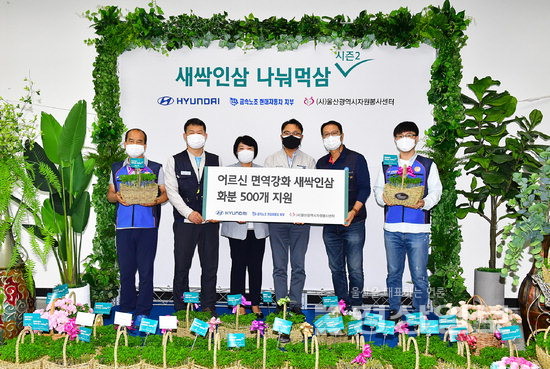 Çö´ëÀÚµ¿Â÷ ³ë»ç°¡ ¿ï»ê½ÃÀÚ¿øºÀ»ç¼¾ÅÍ¿Í ÇÔ²² Áö³ÇØ¿¡ À̾î 2³â° ¡®»õ½ÏÀÎ»ï ³ª´²¸Ô»ï¡¯ ¾ðÅÃÆ® ºÀ»çȰµ¿À» ÅëÇØ Áö¿ª ¾î¸£½ÅÀÇ °Ç° ì±â±â¿¡ ³ª¼¹´Ù.